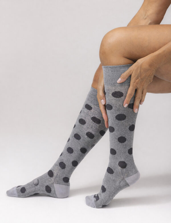Kompressionsstrumpa i mjuk bomull – Grey dots